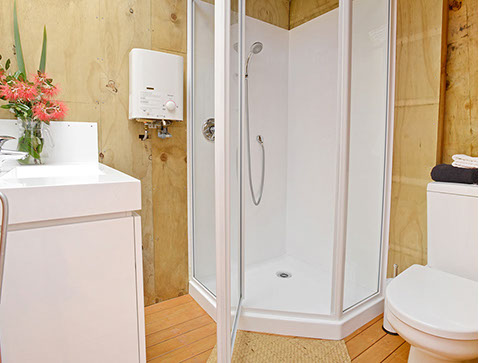 An outdoor bath is set in a prime position at the front of the deck, looking out toward the Hen and Chicken islands. Access from the back of the tent takes you straight out to your enclosed ensuite bathroom and camp kitchen with on tap hot water. Now that's luxury accommodation.